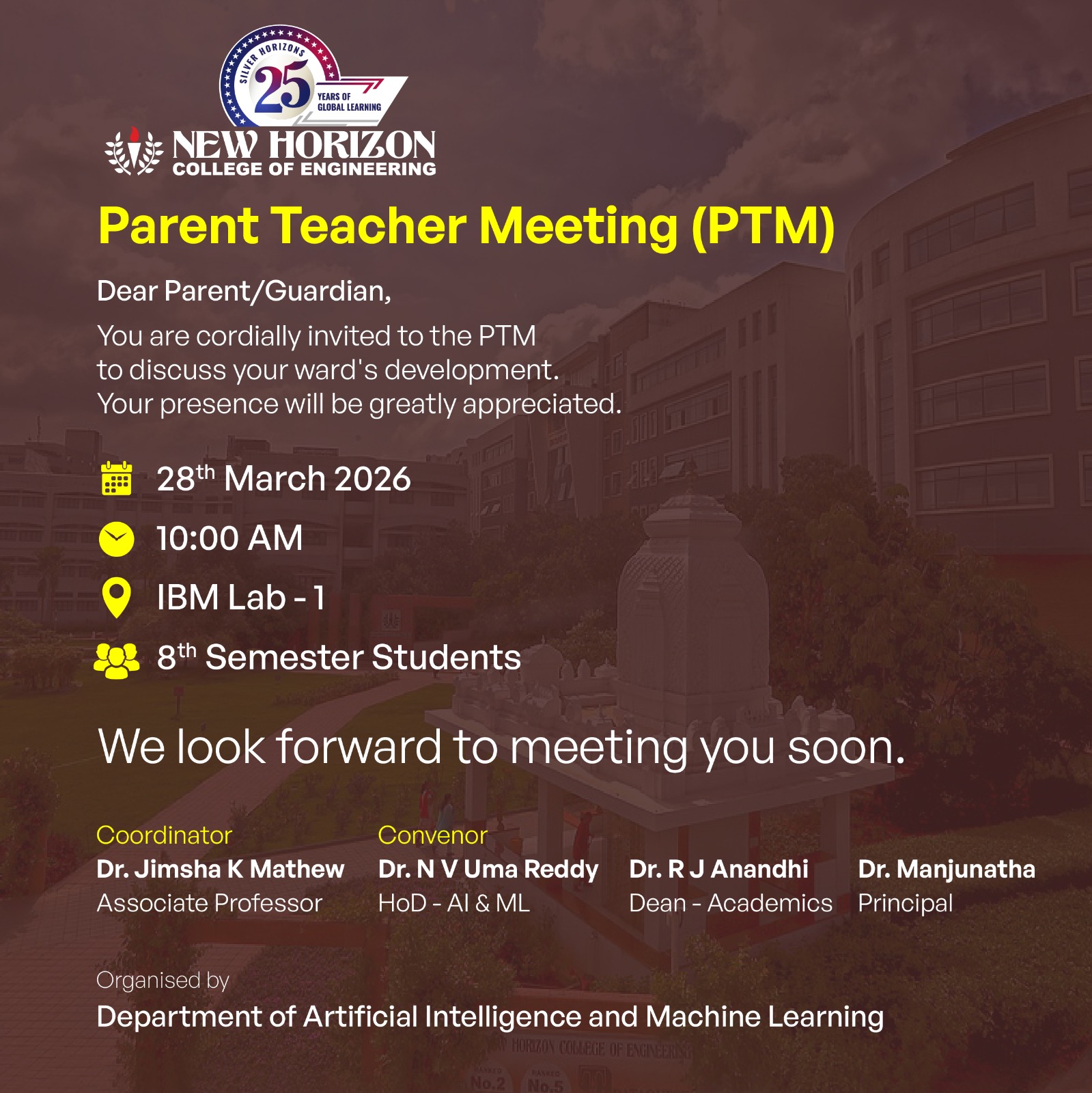 The Department of Artificial Intelligence & Machine Learning at NHCE was established in the year 2001 and offers graduate, post graduate and PhD programs.